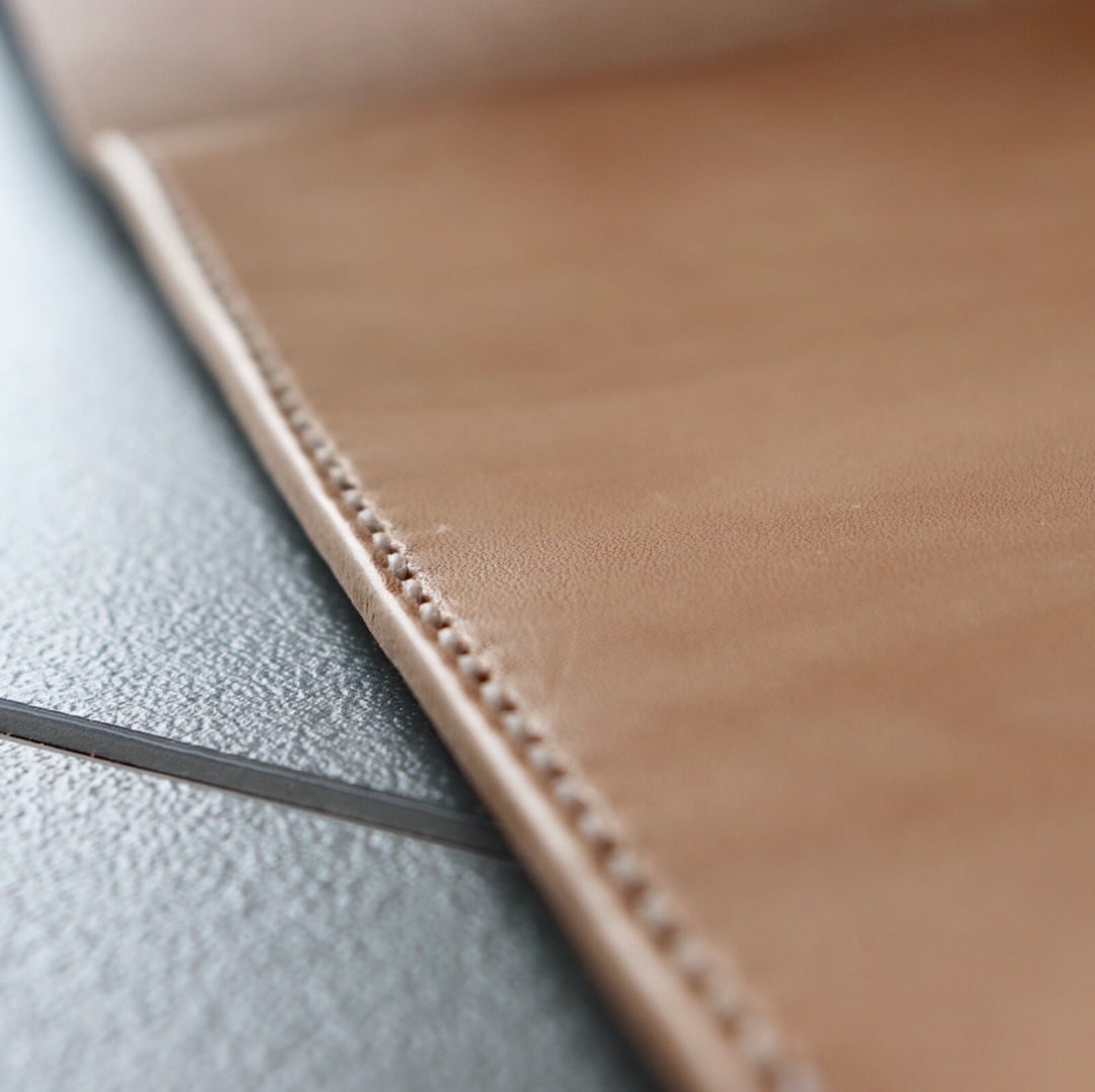 シンプルな縫製で革の存在感と素材感で
