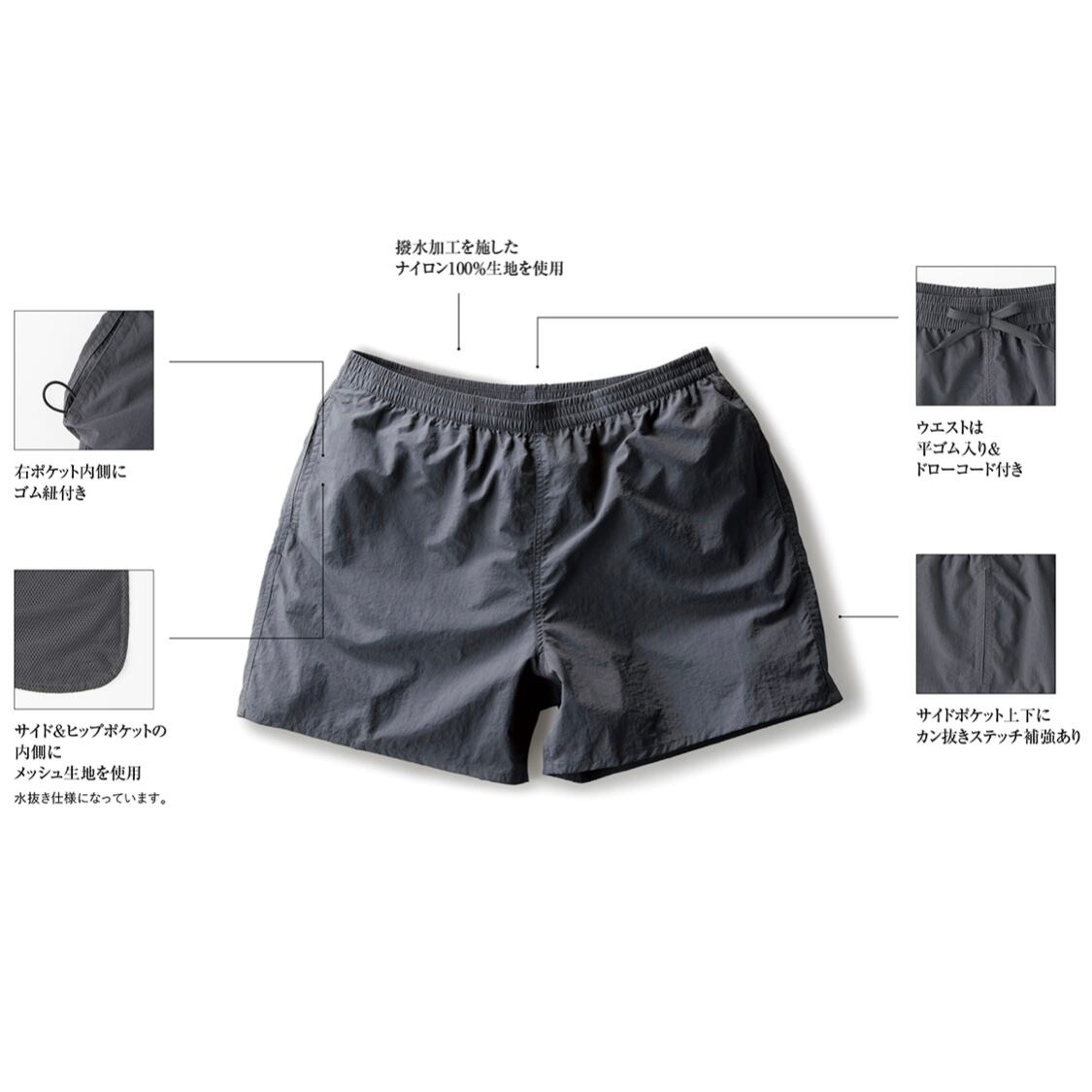 水辺での使用や街穿きも可能な多目的ショーツ。
